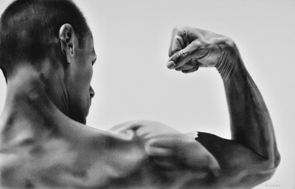 Dan uses a style that mimics reality to the point that his drawings are often mistaken for photographs. He loves shadows, contrast, anonymity and compellingly uses negative space in his compositions.