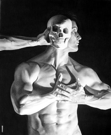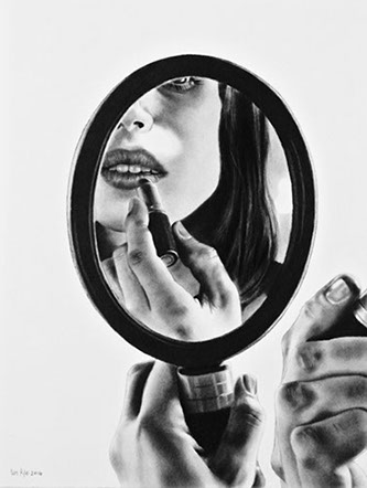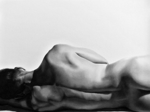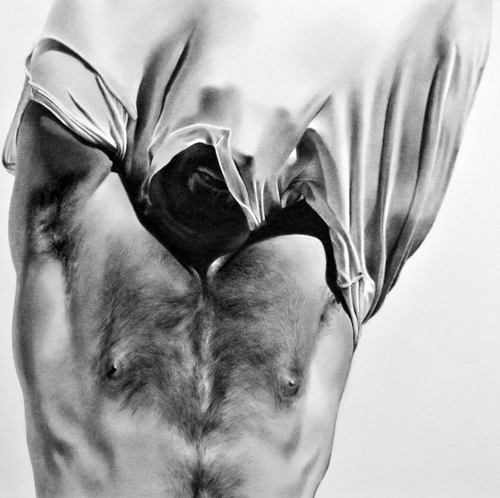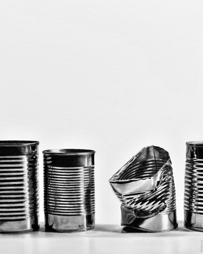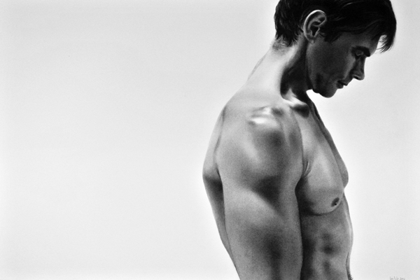 Dan uses a style that mimics reality to the point that his drawings are often mistaken for photographs. He loves shadows, contrast, anonymity and compellingly uses negative space in his compositions.