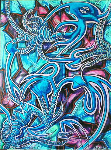Critics have referred his unique style as "mechanically organic" and "biological graffiti".