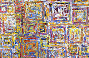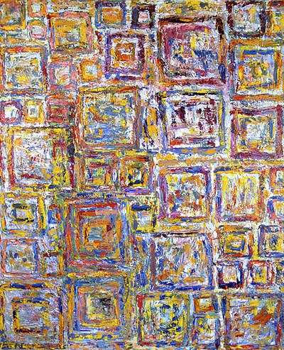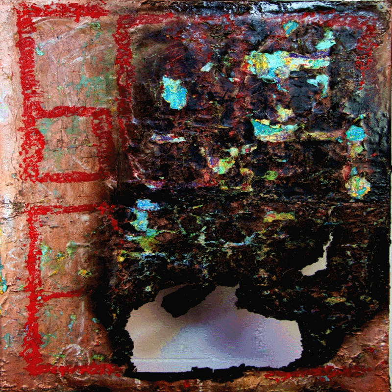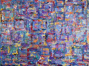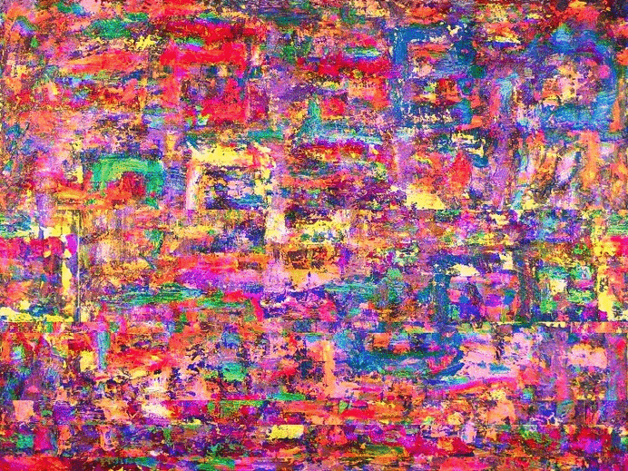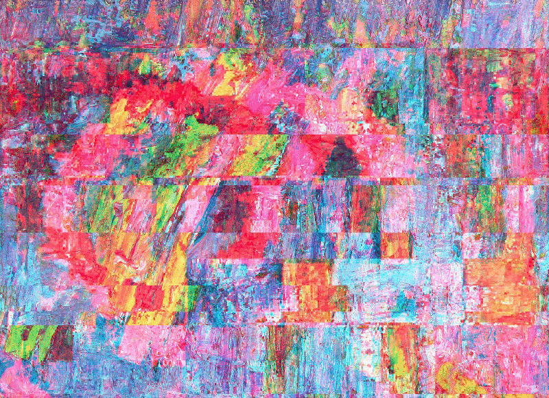 Padrick works dually in oils and .GIFs, utilizing a process-oriented approach to address themes of consumerism and homogenization. His objective is to deconstruct established views, taking a critical look at the determination and manipulation of identity and absurdity of the system. The process involves either creating art or manipulating an image, then taking the image file and categorically corrupting the more lines of code in a series of progressively altered versions of the original image. There is a both primal and modern element to deconstructing an image through the manipulation of the code. It's then tied back together in an animated .GIF. With small delays, the work can be jarring and it can be difficult to discern individual images, allowing it to be subliminally absorbed, mimicking our daily intake of information.