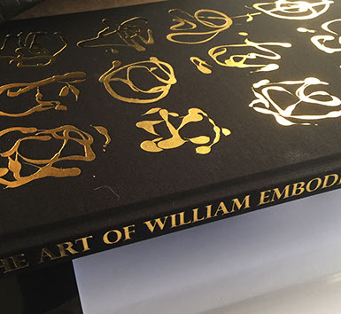 THE ART OF WILLIAM EMBODEN is the second in the Artists Series published by Premium Modern Art, Germany. This quality production was laid out, printed and spot varnished on high stock under the aegis of Crash Paper Art Book Printing. The book is hardcover, cloth bound with Emboden's secret language embossed in gold.